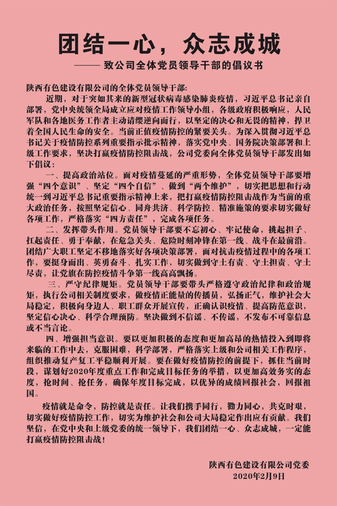倡議書發出后,公司黨員干部積極響應,深入領會倡議書精神,結合各自工作實際,在公司黨委的統一安排部署下,扎實推進各項防控措施落實。公司先后召開多場專題會議研究部署疫情防控及復工復產相關工作,按照“防疫為主、彈性辦公、靈活到崗、有序復工”的原則,公司各黨員干部主動申請值班,勇挑重擔,積極工作,切實發揮帶頭模范作用。同時,公司各基層黨支部也通過召開線上支委會形式,安排部署疫情期間支委工作,要求支部黨員干部發揮作用,做好復工準備期間的防疫措施制定、物資儲備、現場消殺等工作。