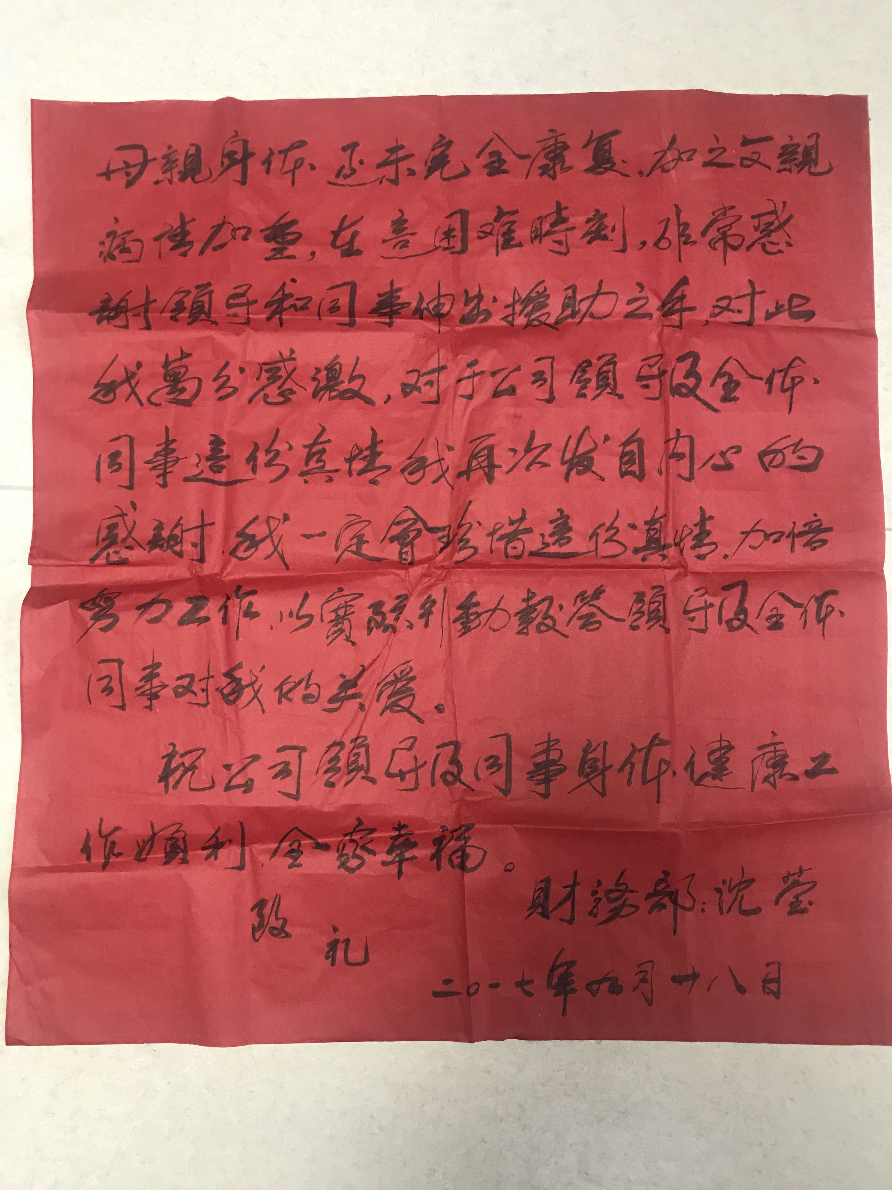大愛無疆,真情永在,公司黨委、工會得知此事后,迅速發(fā)出愛心捐助倡議書,號召公司全體職工為沈瑩捐款,幫助她走出困境。倡議一經(jīng)發(fā)出,立即得到了大家的積極響應(yīng),紛紛伸出援助之手,一個星期內(nèi),就收到愛心善款70000余元。