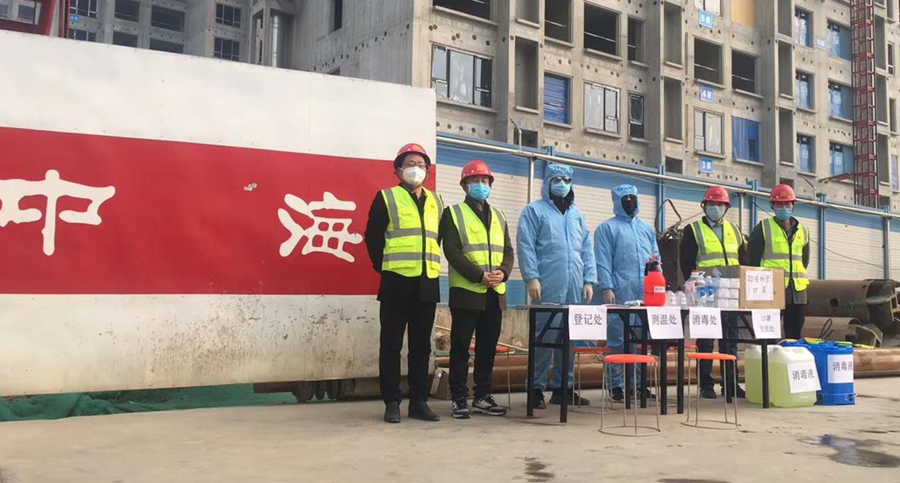 中海項目是公司調(diào)整戰(zhàn)略布局,全面展開自營項目建設(shè),成立工程二部后承接的首個項目,是公司2020年重點項目,意義非凡。新年伊始,卻突遇疫情,為保證工程進度,公司上下高度重視,工程二部經(jīng)理呂紅輝統(tǒng)籌安排,靠前指揮,多次召開線上會議,研究項目部防控防疫及復(fù)工復(fù)產(chǎn)工作;薛桂軍經(jīng)理帶領(lǐng)管理人員根據(jù)質(zhì)監(jiān)站、甲方要求,制訂項目開工前的防疫措施,積極辦理復(fù)工前的各種手續(xù),為項目部的全面復(fù)工復(fù)產(chǎn)做足準備。