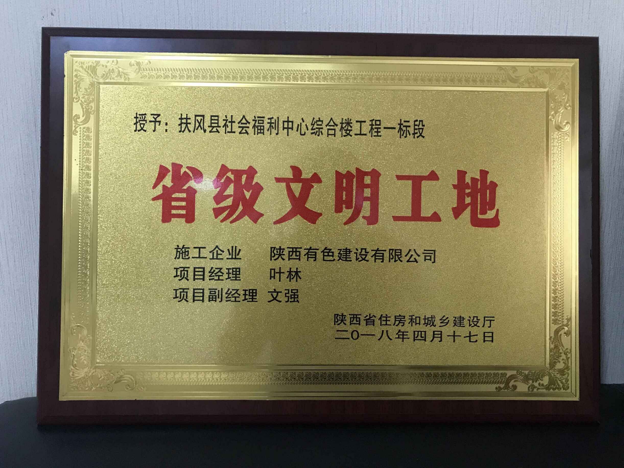 近日,從陜西省住建廳傳來喜訊,陜西有色建設(shè)有限公司承建的扶風(fēng)縣社會福利中心綜合樓一標(biāo)段工程“2018年度省級文明工地稱號。